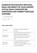 OLDROYD PSYCHOLOGY 1010 FINAL EXAM UNIVERSITY OF UTAH NEWEST ACTUAL EXAM COMPLETE 100 QUESTIONS AND CORRECT DETAILED ANSWERS