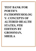 Test Bank For Porth’s Pathophysiology, Concepts of Altered Health States, 9th Edition by Grossman, Sheila