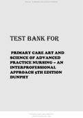 TEST BANK FOR PRIMARY CARE ART AND SCIENCE OF ADVANCED PRACTICE NURSING – AN INTERPROFESSIONAL APPROACH 5TH EDITION DUNPHY ALL CHAPTERS