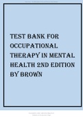 TEST BANK FOR OCCUPATIONAL THERAPY IN MENTAL HEALTH 2ND EDITION BY BROWN 2022 UPDATE