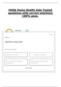 HOSA Home Health Aide Tested questions with correct solutions 100% pass.