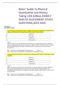 BATES GUIDE TO PHYSICAL EXAMINATION AND HISTORY TAKING 13TH EDITION EXAM 2 HEALTH ASSESSMENT STUDY QUESTIONS 2024 QUESTIONS AND CORRECT ANSWERS
