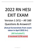 2022 RN HESI EXIT EXAM Version 1 (V1) – All 160 Questions & Answers!! (Actual Screenshots from exam taken in April 2022 A+)