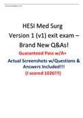 HESI Med Surg Version 1 (v1) exit exam – Brand New Q&As!