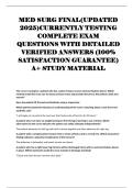 MED SURG FINAL(UPDATED 2025)CURRENTLY TESTING COMPLETE EXAM QUESTIONS WITH DETAILED VERIFIED ANSWERS (100% SATISFACTION GUARANTEE) A+ STUDY MATERIAL