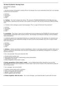 This document contains 35 multiple choice questions related to psychiatric nursing. The questions cover topics such as appropriate treatments for alcoholism, identifying different types of mental disorders based on symptoms, developing nursing care plans, and selecting the best nursing interventions in various psychiatric situations.