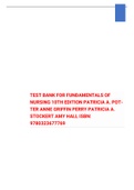 independence, self-esteem,... i x Book Exam (elaborations) • 6 pages • by Brigette • uploaded 2022 Quick View i x Harvard University • NURSING Psychiatric-mental Health Nursing • Sheila L. Videbeck• ISBN 9781451187892 TEST BANK FOR FUNDAMENTALS OF NURSING 10TH EDITION PATRICIA A. POTTER ANNE GRIFFIN PERRY PATRICIA A. STOCKERT AMY HALL ISBN: 9780323677769 (0) $9.99 0x sold MULTIPLE CHOICE