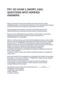 PSY 101 EXAM 1 (SHORT, ASU) QUESTIONS WITH VERIFIED ANSWERS