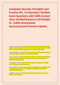Computer Security: Principles and Practice (Ch. 1) Overview| Verified Exam Questions with 100% Correct Clear Verified Answers| All Graded A+ |100% Guaranteed Success|Latest Premium Update.