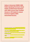 Auburn University COMM 1000: Public Speaking Final Exam Study Guide| Verified Exam Questions with 100% Correct Clear Verified Answers| All Graded A+|Latest Premium Update|100% Guaranteed Success.