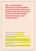 NHA - Certified Medical Administrative Assistant (CMAA) Study Guide AVTEC| Verified Exam Questions with 100% Correct Clear Answers| All Graded A+|100% Guaranteed Success| Latest Premium Update.