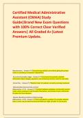 Certified Medical Administrative Assistant (CMAA) Study Guide|Brand New Exam Questions with 100% Correct Clear Verified Answers| All Graded A+|Latest Premium Update.