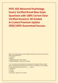 PSYC 435 Abnormal Psychology Exam| Verified Brand New Exam Questions with 100% Correct Clear Verified Answers| All Graded A+|Latest Premium Update 2026|100% Guaranteed Success.