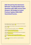 DOD Annual Security Awareness Refresher Exam|Verified Brand New Exam Questions with 100% Correct Clear Verified Answers| All Graded A+|Latest Premium Update|100% Guaranteed Success.