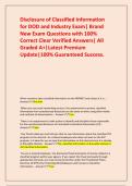 Disclosure of Classified Information for DOD and Industry Exam| Brand New Exam Questions with 100% Correct Clear Verified Answers| All Graded A+|Latest Premium Update|100% Guaranteed Success.