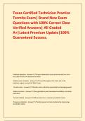 Texas Certified Technician Practice Termite Exam| Brand New Exam Questions with 100% Correct Clear Verified Answers| All Graded A+|Latest Premium Update|100% Guaranteed Success.