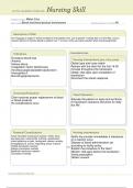 Description of Skill Indications Outcomes/Evaluation CONSIDERATIONS Nursing Interventions (pre, intra, post) Potential Complications Client Education Nursing Interventions Melyn Cruz Blood and blood product transfusions 40 An 18 gauge or larger IV will be inserted in the patients vein, use a special Y tubing with a in-line filter, use an infusion device to transfer blood to patient over 1-4 hours. Only use saline solution when transfusing bloo