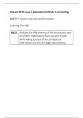 AB.D1 Evaluate the effectiveness of the techniques used to protect organisations from security threats while taking account of the principles of information security and legal requirements. | UNIT 7: IT SYSTEMS SECURITY AND ENCRYPTION | BTEC Computing