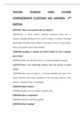THE FOLLOWING DOCUMENT IS A COMPREHENSIVE TRAUMA NURSING CORE COURSE WITH WELL ELABORATED QUESTIONS WITH ANSWERS FOR BETTER COMPREHENSION MAKING STUDYING EASIER AND FASTER. THE DOCUMENT IS EFFICIENT FOR REVISION
