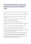 Real Estate Idaho State Exam Latest Questions And Answers With Real Tests