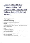 Connecticut Real Estate Practice And Law Quiz Questions And Answers | 2024 Updated Quiz 100% Correct Answers