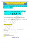 ATI Care of Children RN 2019 Proctored Exam – Level 3 / Peds 2019 All 70 Questions with the Answers Highlighted