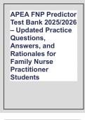 APEA FNP Predictor Test Bank 2025 with questions and verified answers with a guaranteed pass (A}
