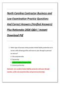 - North Carolina Contractor Business and Law Examination Practice Questions And Correct Answers (Verified Answers) Plus Rationales 2026 Q&A | Instant Download Pdf • Exam (elaborations)