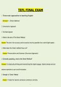 - TEFL Final Exam Q&A – Verified Questions and Answers updated for (2025–2026) 100% PASS. • Exam (elaborations)