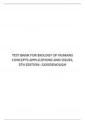TEST BANK FOR BIOLOGY OF HUMANS CONCEPTS APPLICATIONS AND ISSUES, 5TH EDITION : GOODENOUGH