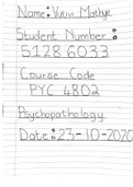 Exam (elaborations) PYC4802 - Psychopathology (PYC4802) Understanding Psychopathology, ISBN: 9780190722562