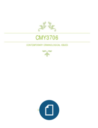 A summary of the important information in the study guide for CMY3706 - contemporary criminological issues. NOTE: THIS IS BASED ON THE 2015 STUDY GUIDE - the old one. This is good for revision purposes, hence the discounted price.