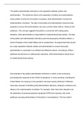 The politics-administration dichotomy is the separation between politics and administration. The dichotomy refers to the separation of politics and administration, where politics involves the formulation of policies, while administration involves the implementation of policies. The idea is that politics and administration should be kept separate to ensure that administrators can carry out their duties without influence from politicians. This concept suggests that politics is concerned with mak...