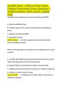 Aceable Agent California Real Estate - Practice Assessment Exam Questions + Verified Answers 100- correct, Update