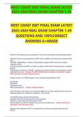 WEST COAST EMT FINAL EXAM LATEST REAL EXAM CHAPTER 1-29 QUESTIONS AND 100%CORRECT ANSWERS A+GRADE