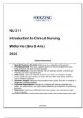 NU 211 Intro to Clinical Nursing Midterms (Qns & Ans) 2025 - HUNU 211 Intro to Clinical Nursing Midterms (Qns & Ans) 2025 - HUNU 211 Intro to Clinical Nursing Midterms (Qns & Ans) 2025 - HU