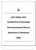 C273 SOCG 1010 Intro to Sociology - FA Review (Qns & Ans) - WGU 2025.