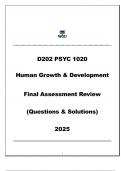 D202 PSYC 1020 Human Growth & Development - FA Review (Qns & Ans) - WGU 2025D202 PSYC 1020 Human Growth & Development - FA Review (Qns & Ans) - WGU 2025D202 PSYC 1020 Human Growth & Development - FA Review (Qns & Ans) - WGU 2025