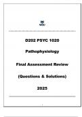 D202 PSYC 1020 Pathophysiology - FA Review (Qns & Ans) - WGU 2025