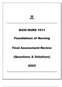 D439 NURS 1011 Foundations of Nursing - FA Review (Qns & Ans) - WGU 2025.
