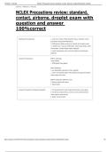 NCLEX Precautions review; standard, contact, airborne, droplet exam with question and answer 100%correct