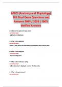 APHY (Anatomy and Physiology) 101 Final Exam Questions and Answers 2025 / 2026 | 100% Verified Answers