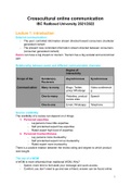 Summary cross cultural online communication year 2 International Business Communication at Radboud University This summary consists of all the lecture information of cross-cultural online communication. In addition it also contains notes about the discussed papers. All figures and models are presented in the summary. Lecture 1: Introduction Lecture 2: Intercultural differences in communication Lecture 3: Cognitive biases and response styles Lecture 4: Emotional valence Lecture 5: Linguistic re...