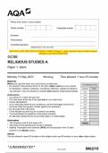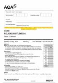 textual studies) Mark scheme June 2023 [VERIFIED] i x Exam (elaborations) • 42 pages • by CoachKENI • uploaded 2025 Quick View i x 2023 AQA GCSE RELIGIOUS STUDIES A 8062/2B Paper 2B • 2023 AQA GCSE RELIGIOUS STUDIES A 8062/2B Paper 2B 2023 AQA GCSE RELIGIOUS STUDIES A 8062/2A Paper 2A Thematic Studies Mark scheme June 2023 [VERIFIED] (0) $10.49 0x sold 2023 AQA GCSE RELIGIOUS STUDIES A 8062/2A Paper 2A Thematic Studies Mark scheme
