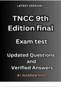 This TNCC 9th Edition Real Exam Test Bank is expertly aligned with the Emergency Nurses Association (ENA) Trauma Nursing Core Course curriculum. It contains 150+ verified, exam-accurate questions and answers reflecting the actual TNCC testing format, trauma assessment priorities, primary and secondary survey protocols, shock management, head and spinal injuries, musculoskeletal trauma, thoracic and abdominal emergencies, pediatric and geriatric trauma, and trauma team roles. Already graded with ...