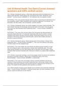 Unit III Mental Health Test Bank (Correct Answer) questions and 100% verified correct