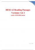 HESI A2 Reading Passages Versions 1 & 2 with verified answers