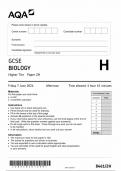 AQA GCSE BIOLOGY QUESTION PAPER 2024 (Higher Tier; Paper 1H) 8461/1H