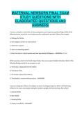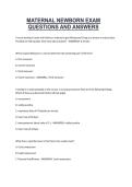 This document contains practice questions and detailed answers covering key topics in maternal and newborn nursing. It includes material on prenatal care, labor and delivery, postpartum care, newborn assessment, and common complications. The questions are designed to support exam preparation and reinforce understanding of essential maternal–infant concepts. Suitable for nursing students preparing for course exams or licensure assessments