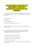 This document contains a comprehensive set of practice questions and elaborated answers for the VATI Maternal Newborn Pre-Assessment Exam. It covers key topics including antepartum care, labor and delivery, postpartum nursing, and newborn assessment. The material is structured to support exam preparation and reinforce critical thinking for maternal-newborn nursing concepts.